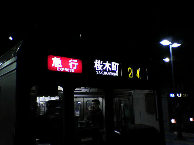電車と行き先方向幕.しかし,なぜか電光掲示が多かった(汗.